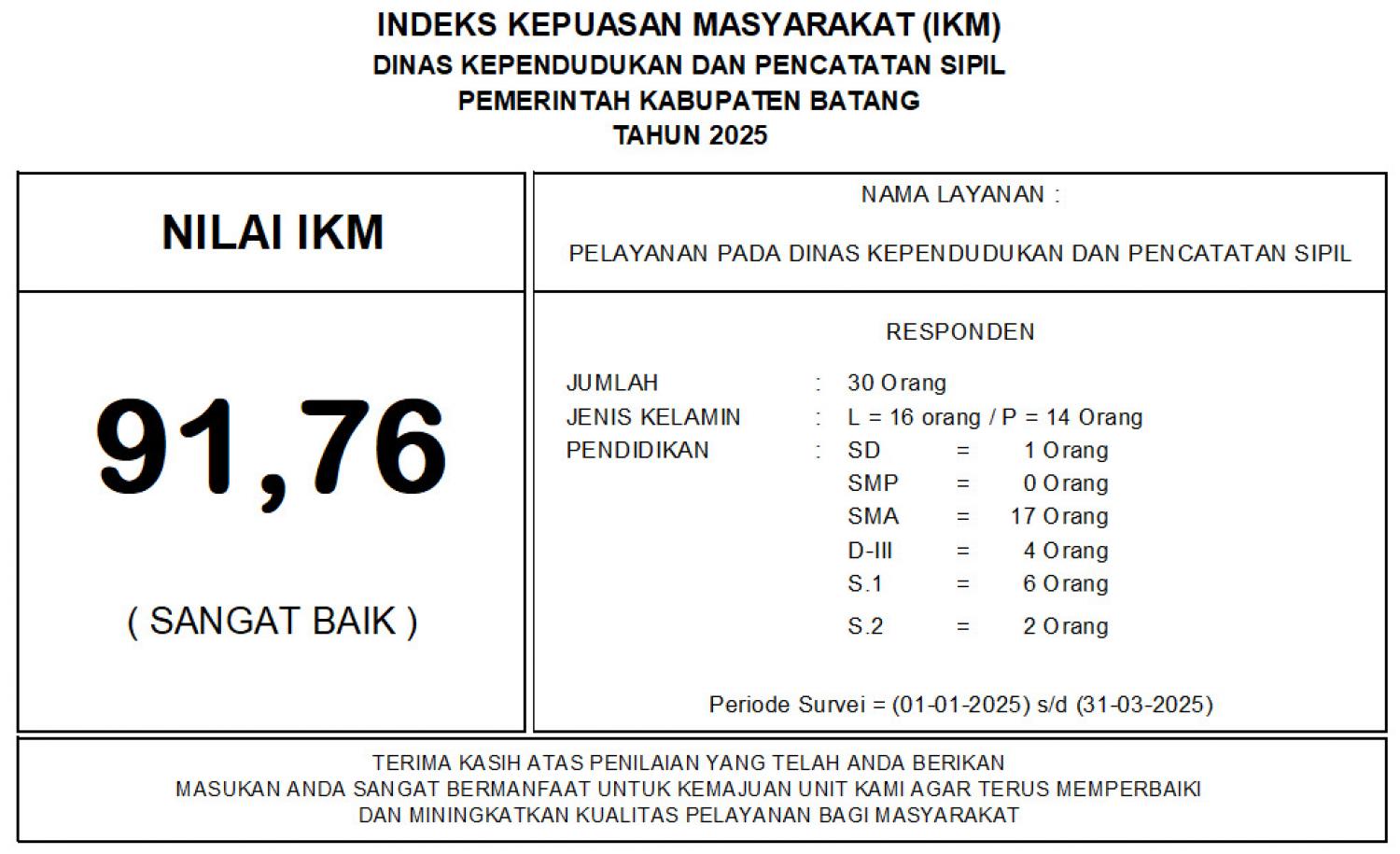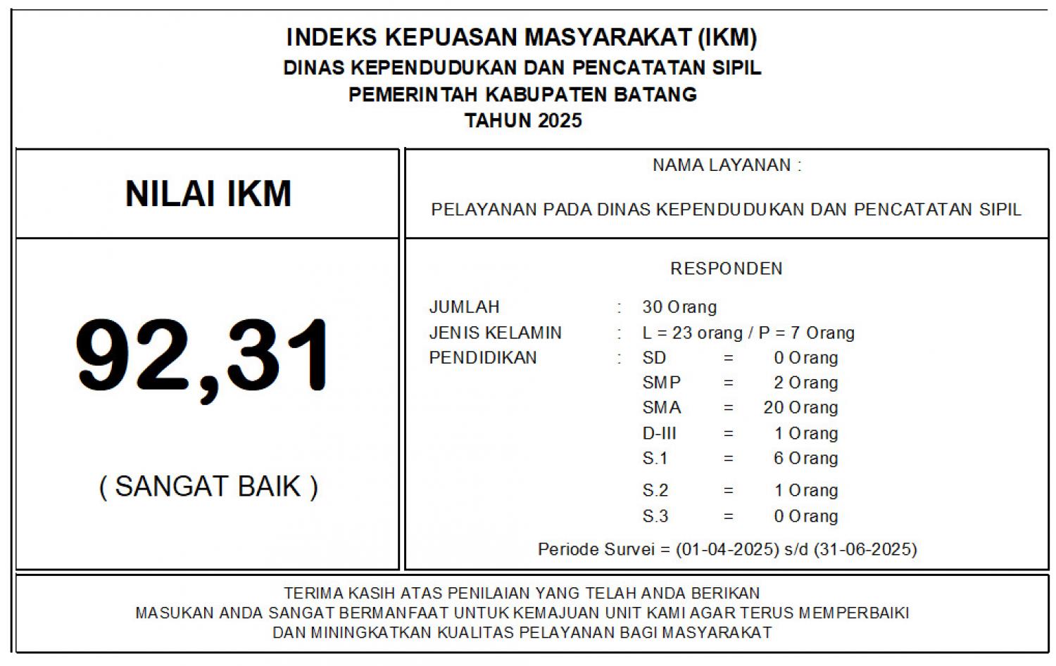 29 Sep 2025HASIL SKM TW I DISDUKCAPIL BATANG