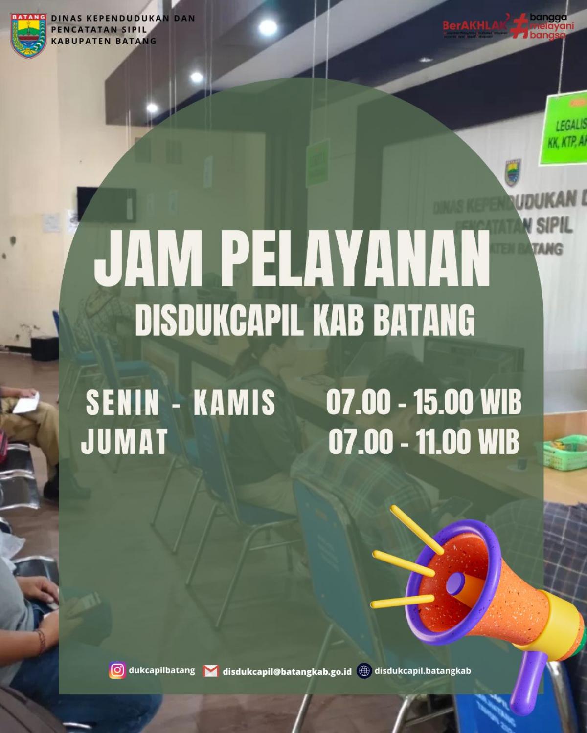 JAM PELAYANAN DISDUKCAPIL KAB BATANG 22 September 2025 Admin Disdukcapil Dibaca 22 Kali JAM PELAYANAN DISDUKCAPIL KAB BATANG JAM PELAYANAN DISDUKCAPIL KAB BATANG